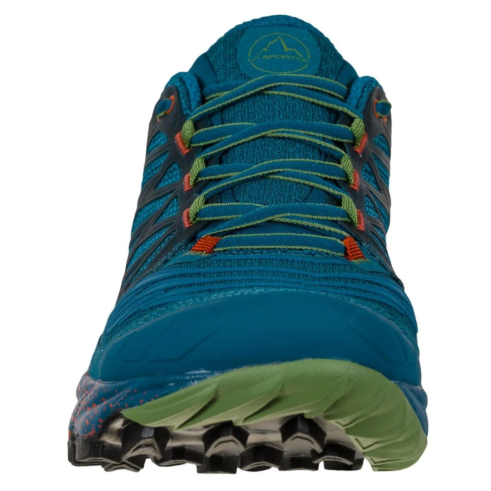 La Akasha II est une chaussure de trail offrant une très bonne accroche et un excellent amorti. La semelle FriXion bi densité permet un très bon compromis entre durabilité et adhérence. Des renforts de densité stratégiquement placés favorise l’appui naturel du pied et sa stabilité. Ce modèle est idéal pour les gabarits forts ou les trails très longs grâce à l’amorti épais mais plutôt ferme. Un pare pierre est présent à l’avant afin de protéger vos orteils et d’améliorer la robustesse.