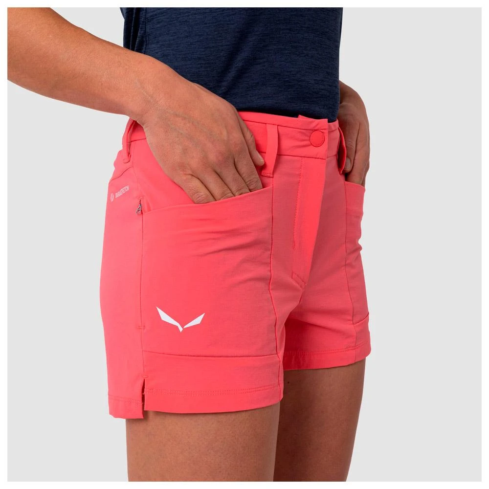 Le short de randonnée pour femme Salewa Puez Durastretch est un modèle minimaliste qui offre les garanties d’un confort optimal. Sa construction stretch accompagne les mouvements sans contrainte, tandis que son tissu léger et respirant joue parfaitement son rôle de régulateur thermique. Résistant à l’abrasion, il est également doté d’un traitement déperlant durable sans PFC qui le rend particulièrement durable. Le côté pratique n’a pas été négligé car ce short dispose d’une poche latérale zippée, ainsi que de deux poches avant plates pour ranger vos petits accessoires.
