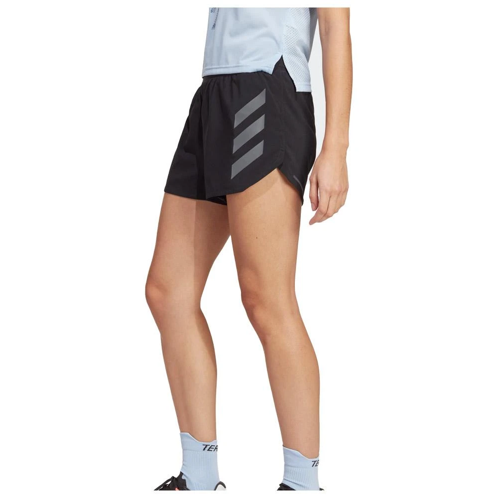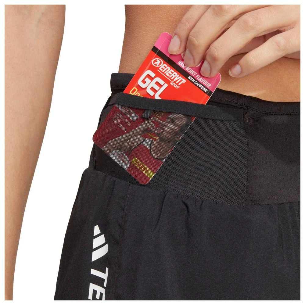 Ce short de trail running offre une excellente libertĂ© de mouvement grâce Ă sa matière stretch et lĂ©gère. La technologie Aeroready absorbe la transpiration et vous maintien au sec. Des poches permettent d’emporter des gels, votre tĂ©lĂ©phone ou autres petits objets durant votre course. Des boucles sont Ă©galement prĂ©vues pour attacher vos bâtons. Ce modèle est fabriquĂ© en polyester recyclĂ© et ces dĂ©tails rĂ©flĂ©chissants amĂ©liorent votre visibilitĂ© par faible luminositĂ©. Â