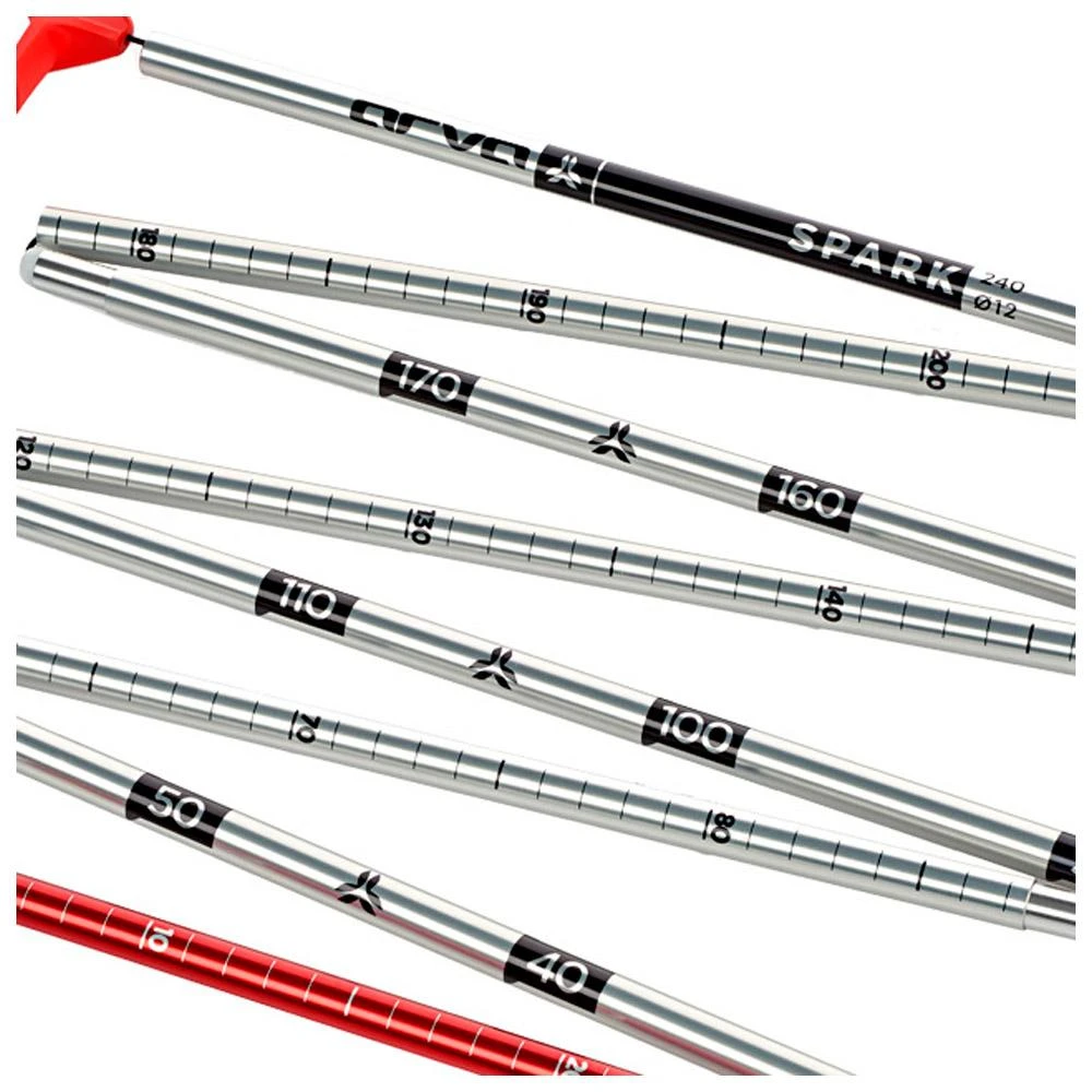 Super compacte une fois repliée, la sonde Arva Spark 240 se révèle extrêmement efficace dans le travail de recherche d’une victime d’avalanche. Conçue avec 8 tubes en aluminium, elle présente une hauteur de 2,40 m lorsqu’elle est entièrement déployée. Ceux-ci s’assemblent très facilement, la poignée et le système de verrouillage Pin Lock permettant un déploiement extrêmement rapide. Le système de mise en tension par câble en kevlar est réputé pour sa fiabilité et sa robustesse. La graduation permet de connaître précisément la profondeur de neige.